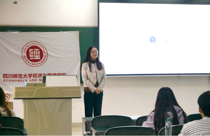 活动伊始,经济与管理学院副院长蒋丹上台致辞。她首先介绍了川师对外研学交流项目,同时向大家阐明了讲座核心主题,希望大家积极参加海外交流项目。