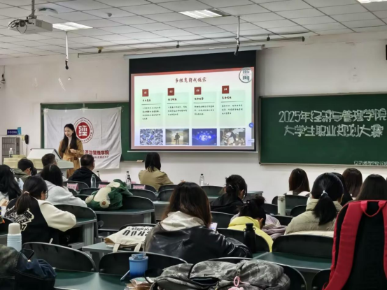 11月12日,经济与管理学院第十一届大学生职业规划大赛在成龙校区第一教学楼B211举行。学院分团委书记王汀,辅导员张江威、侯雨欣,以及学院分团委常委代表出席本次大赛,经管学子积极参与观摩。