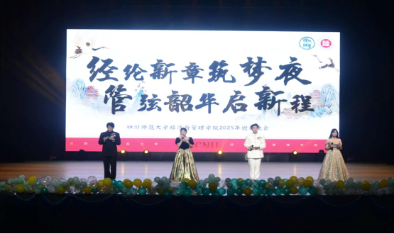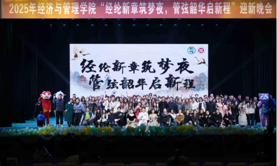 11月29日,经济管理学院2025年迎新晚会在龙湖剧场举行。学院党委书记肖明辉、副院长蒋丹、何斌,经济系、管理系、金融系、行政党支部的教师代表,以及2025级全体新生和2023级、2024级的部分同学参与本次晚会。